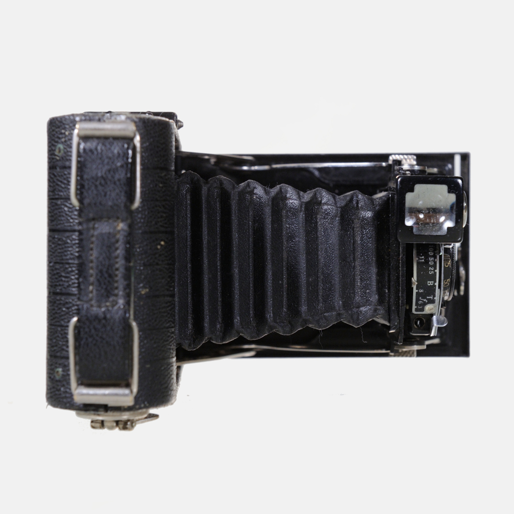The Kodak Junior Six-20 (No.0 Kodon) is a classic folding medium format camera introduced by Kodak Ltd in Britain during the mid-20th century. Compact and portable, it utilizes 620 roll film to produce large 6×9 cm negatives, making it well-suited for landscapes and portraits. The camera features a No.0 Kodon metal leaf shutter with speeds of 1/25, 1/50, 1/100 second, plus Bulb and Time modes, and is typically paired with a 100mm Kodak Anastigmat lens that focuses down to 5 feet. Apertures range from f/6.3 to f/32, giving some creative control despite its modest lens brightness. The Kodak Junior Six-20 is entirely mechanical, has no flash capabilities, and sports flexible tripod mounting options and dual viewfinders for framing, one of which rotates for different orientations. Its solid build, classic folding design, and simplicity make it a charming piece of photographic history for enthusiasts and collectors alike.