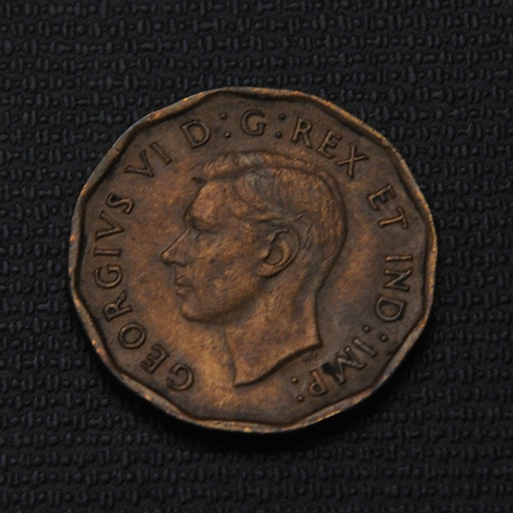 The 1942 Canadian 5 cents coin made of tombac was produced during World War II, when nickel was reserved for wartime production, resulting in a temporary switch to an alloy called tombac (composed mainly of copper and zinc). To help distinguish it from the similarly colored 1-cent coin, the tombac 5-cent coins featured a unique dodecagonal (12-sided) shape and a bright yellow-bronze appearance, with the reverse showing a beaver on a log and the obverse displaying King George VI. The coin was non-magnetic, weighed 4.54 grams, had a diameter of 21.3 mm, and a plain edge, with a total mintage of approximately 3.4 million pieces. This distinctive coin reflected Canadian ingenuity in response to wartime resource constraints and was highly recognizable in circulation at the time.