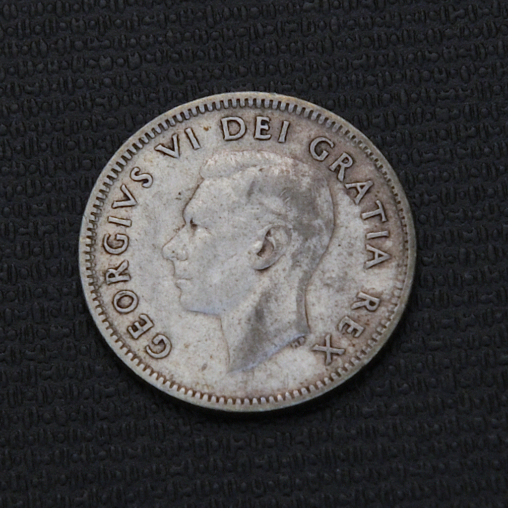 The 1950 Canadian 10 cents coin, minted by the Royal Canadian Mint, features on its obverse the bust of King George VI designed by Thomas Humphrey Paget, with the inscription “GEORGIVS VI DEI GRATIA REX.” The reverse depicts a stylized Bluenose schooner sailing, a design by Emanuel Hahn symbolizing Canada’s maritime heritage and fishing industry. This coin is made of 80% silver and 20% copper, weighs 2.33 grams, has a diameter of approximately 18.03 mm, and a reeded edge. It was struck as a circulation coin with a mintage of about 17.8 million pieces and exhibits non-magnetic properties. It follows a medal alignment and carries inscriptions “CANADA 1950” and the denomination of “10 CENTS” on the reverse. The coin has historical significance and numismatic value, varying with condition from worn circulated specimens to mint state coins prized by collectors.