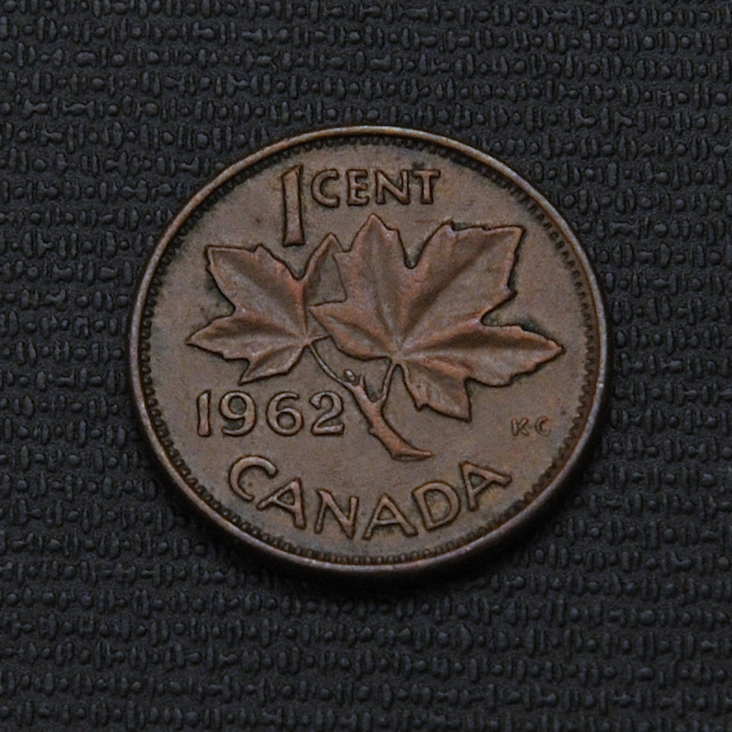 The 1962 Canadian 1 cent coin is a bronze coin featuring a young Queen Elizabeth II on the obverse and two maple leaves on the reverse, with multiple collectible die varieties and a large mintage from the Royal Canadian Mint.