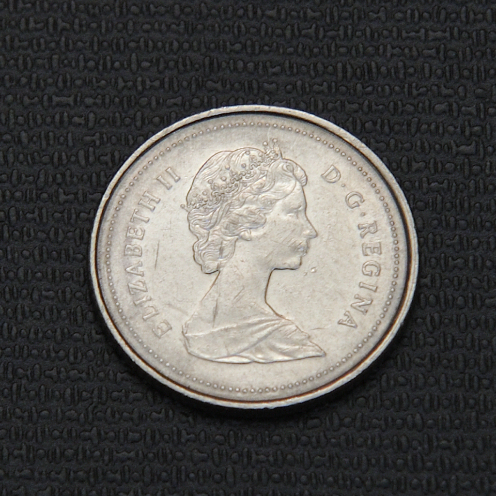 The 1986 Canadian 10-cent coin, made of nickel, features a magnetic property with a weight of 2.07 grams, a diameter of 18.03 mm, and a thickness of 1.16 mm. Its edge is reeded, with a medal alignment axis orientation. The obverse displays a bust of Queen Elizabeth II wearing a tiara, designed by Arnold Machin, with the legend “ELIZABETH II D – G – REGINA.” The reverse, designed by Emanuel Hahn, portrays a stylized Bluenose schooner sailing with tall sails, accompanied by the inscriptions “CANADA,” the year “1986,” and the denomination “10 CENTS.” The coin was minted by the Royal Canadian Mint with a circulation mintage of 168,620,000. It comes in multiple finishes, including circulated, uncirculated, specimen, and proof, and retains a classic Canadian symbol with its iconic schooner design representing maritime heritage.