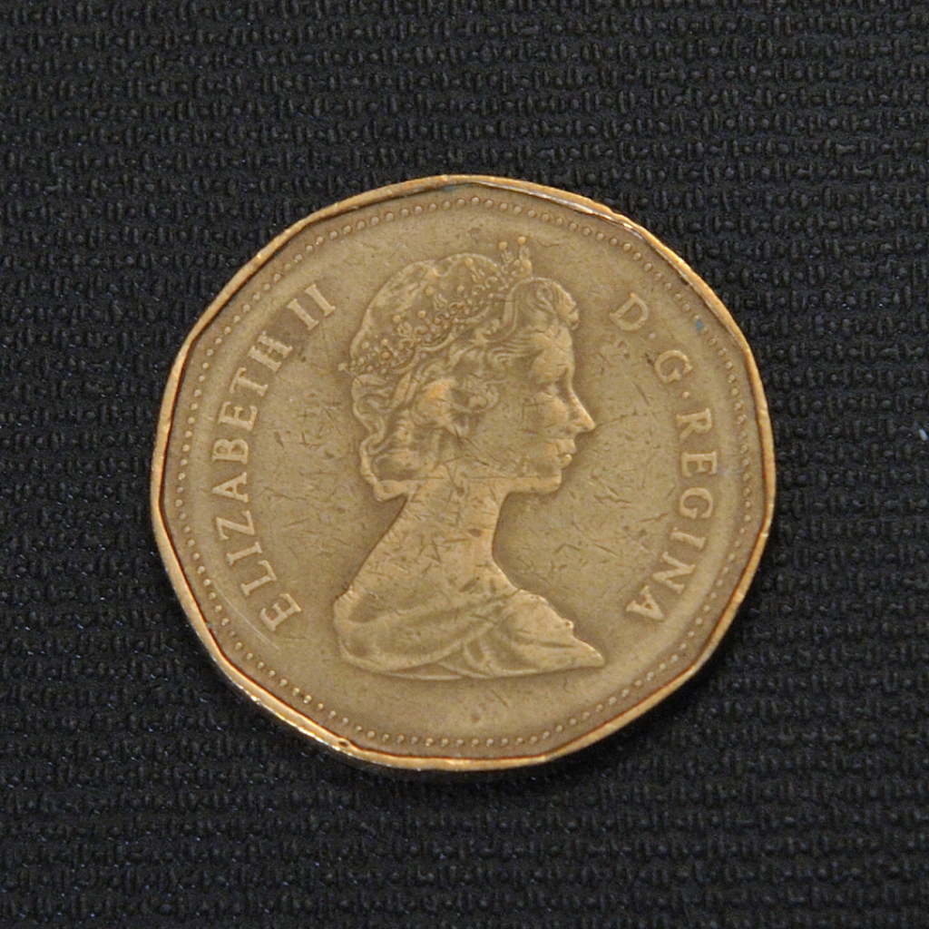 The Canadian 1 dollar coin issued in 1987, known as the “loonie,” features an 11-sided gold-colored shape, is made primarily of nickel and bronze, weighs 7 grams, and measures about 26.5 millimeters in diameter; its reverse depicts a solitary common loon designed by Robert-Ralph Carmichael, while the obverse bears a portrait of Queen Elizabeth II by Arnold Machin, and it was introduced to replace the 1 dollar bill as a cost-saving measure, quickly becoming an iconic part of Canadian currency and culture.