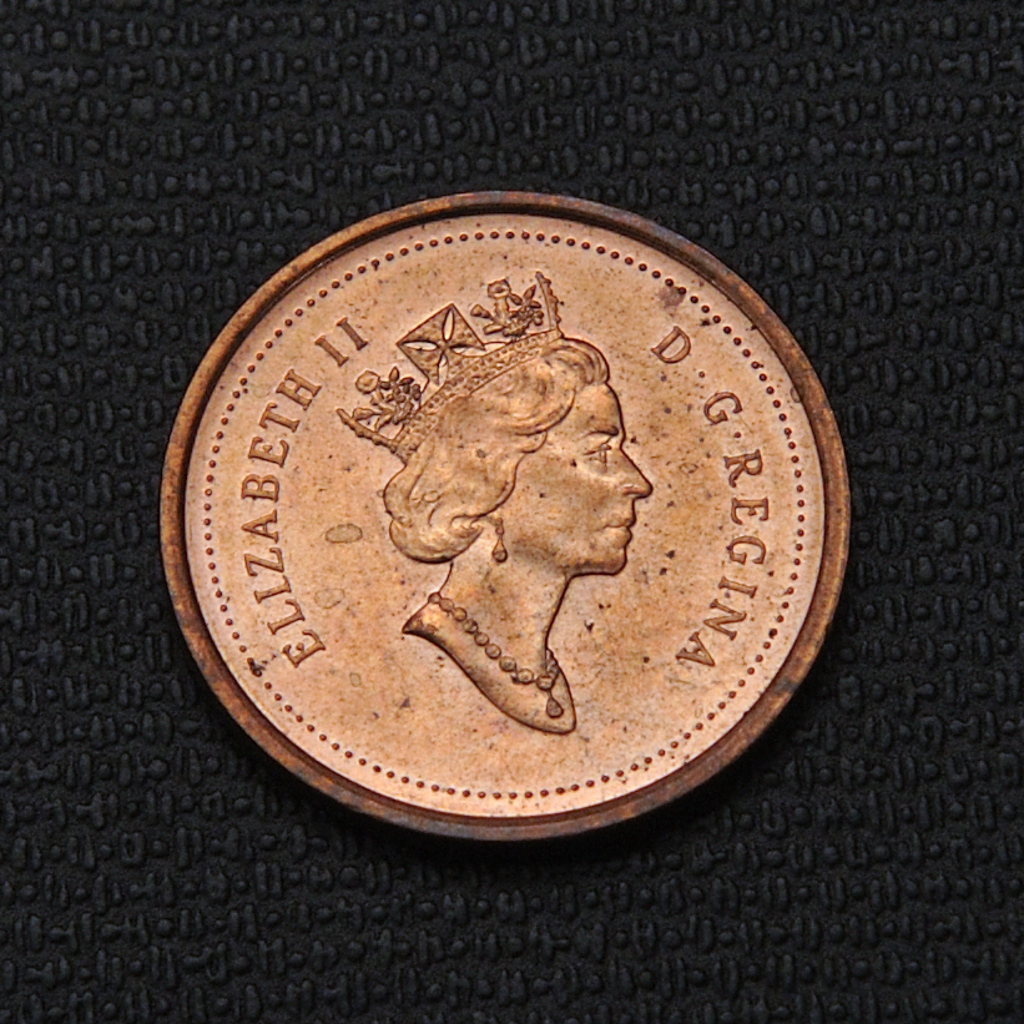 The 2001 Canadian 1 cent coin is a copper-plated zinc coin featuring the obverse with a bust of Queen Elizabeth II wearing a circular diamond crown adorned with roses, shamrocks, and thistles, designed by Dora de Pédery-Hunt. The reverse side, designed by G. E. Kruger-Gray, shows two maple leaves on the same twig, symbolizing Canadian heritage and unity. The coin has a plain edge, weighs 2.25 grams, measures 19.05 mm in diameter, and was minted by the Royal Canadian Mint with a circulation mintage of approximately 919 million. Its value in circulated condition is typically just its face value, but mint state coins can reach higher collector values depending on their grade.