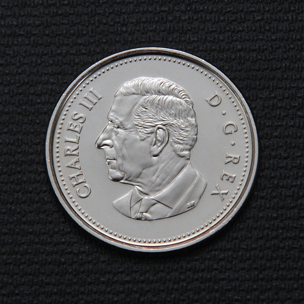 The 2024 Canadian 25-cent coin featuring the caribou is part of Canada’s standard circulation coinage and continues the long tradition of displaying the iconic animal on the quarter since 1937. Struck primarily in nickel-plated steel, the coin measures 23.88 mm in diameter with a weight of 4.4 grams and a serrated edge. Its reverse design, created by Canadian artist Emanuel Hahn, depicts the majestic caribou’s head with prominent antlers, symbolizing Canada’s wildlife heritage. The obverse in 2024 carries the effigy of King Charles III, marking a historic transition as this is among the first regular circulation coins to bear his portrait instead of Queen Elizabeth II, reflecting a new era in Canadian numismatics.