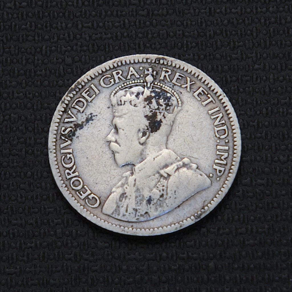 The Canadian 10 cents coin from 1933 was struck by the Royal Canadian Mint with a mintage of 672,368 pieces, featuring the bust of King George V on the obverse, designed by Sir Edgar Bertram Mackennal, and on the reverse, a crowned wreath of 22 maple leaves created by William Henry James Blakemore. The coin was composed of 80% silver and 20% copper, weighed 2.32 grams, had a diameter of 18.03 mm, and its legend read “GEORGIVS V DEI GRA : REX ET IND : IMP :” on the obverse and “10 CENTS CANADA 1933” on the reverse. It had a reeded edge, medal alignment, a melt value around $3.50 CAD, and could be found in grades from heavily circulated to high mint state, with values ranging from a few dollars to several thousand in MS-67 condition.