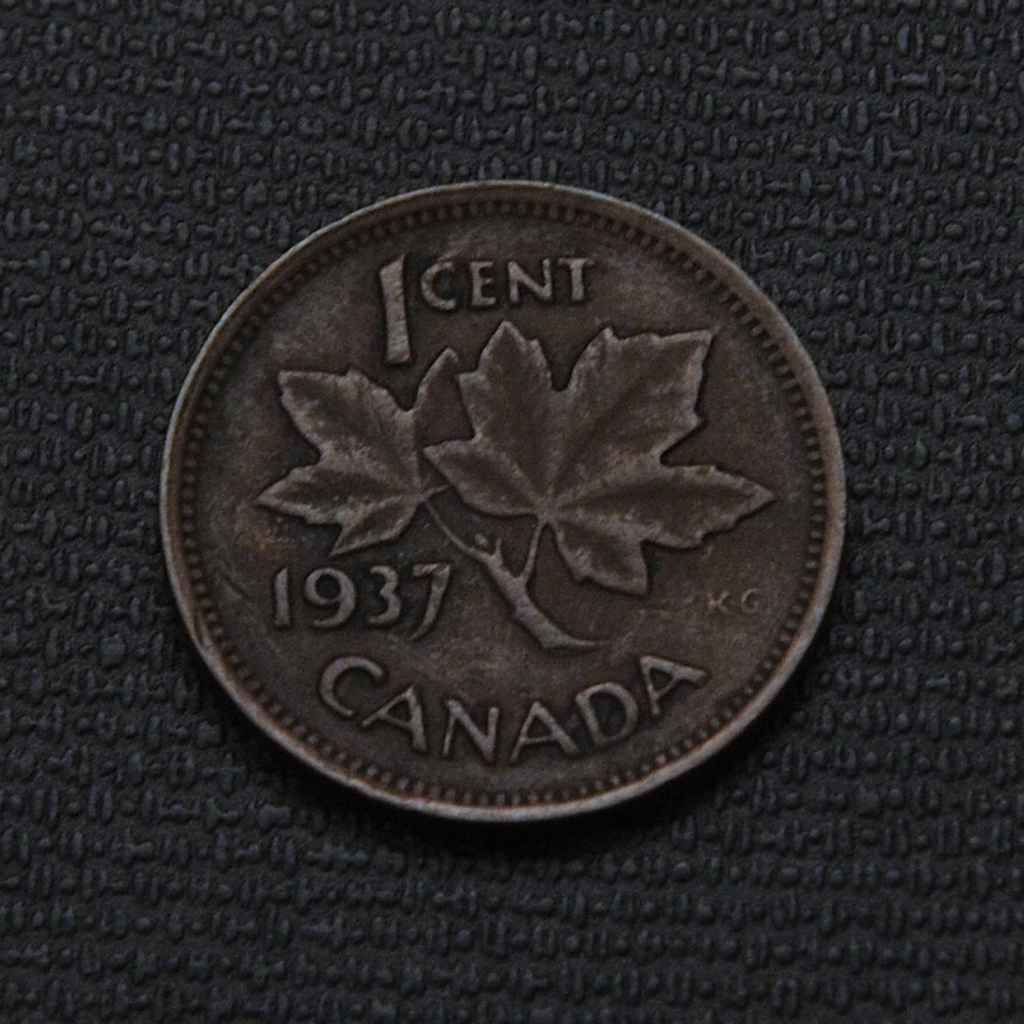 The 1937 Canadian 1 cent coin is distinguished by King George VI’s portrait on the obverse and a timeless maple leaf twig design on the reverse, marking the start of a lasting symbol for Canada’s penny.