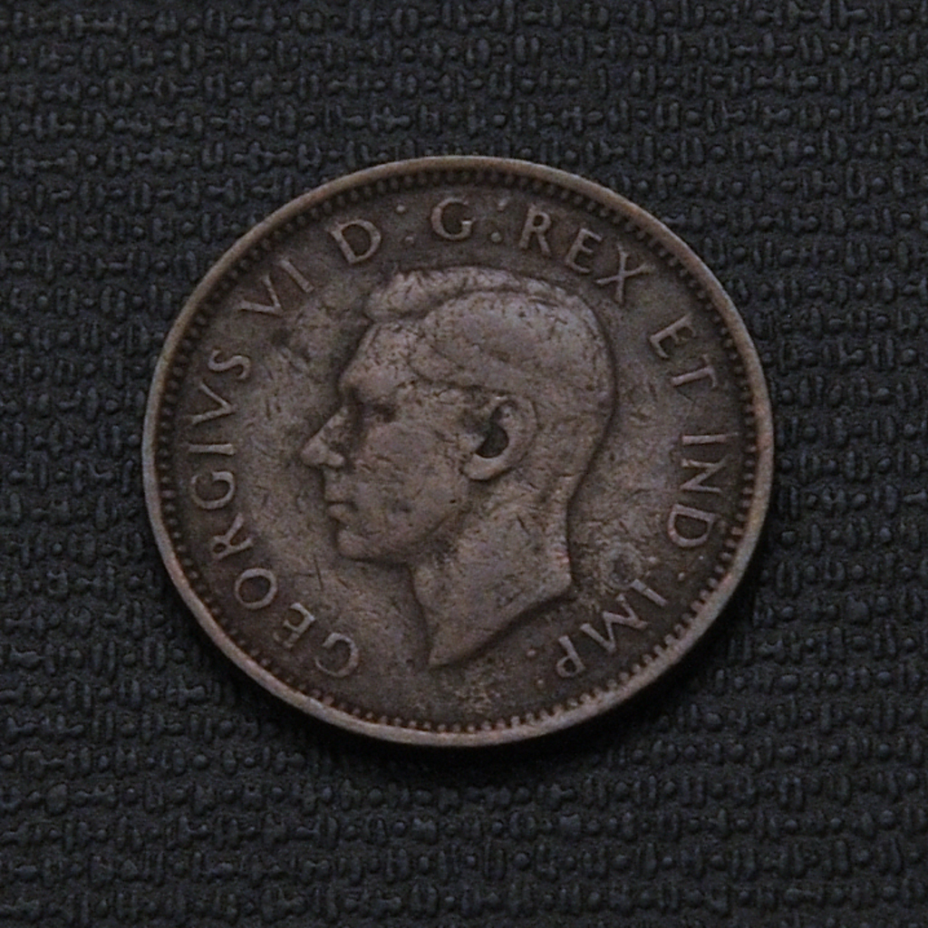 The 1937 Canadian 1 cent coin features the first year of King George VI’s reign on its obverse with a left-facing bust of the king, designed by Thomas Humphrey Paget. The reverse side prominently displays two realistic maple leaves on the same twig, a design by George Kruger-Gray that became an iconic Canadian symbol and remained unchanged for many years. Made primarily of 95.5% copper, 3% tin, and 1.5% zinc, the coin has a diameter of 19.05 mm and weighs approximately 3.24 grams. It was minted by the Royal Canadian Mint as a regular circulation coin and represented a significant Canadian identity with the iconic maple leaf motif, symbolizing the country’s natural heritage and pride.