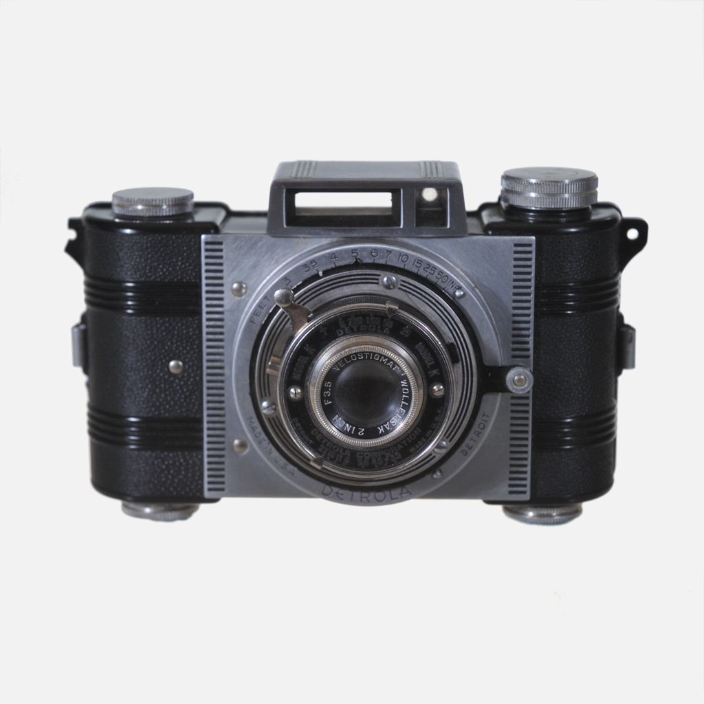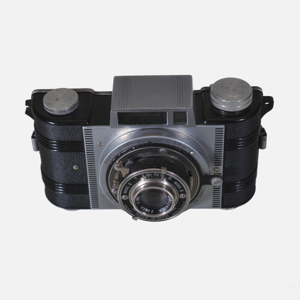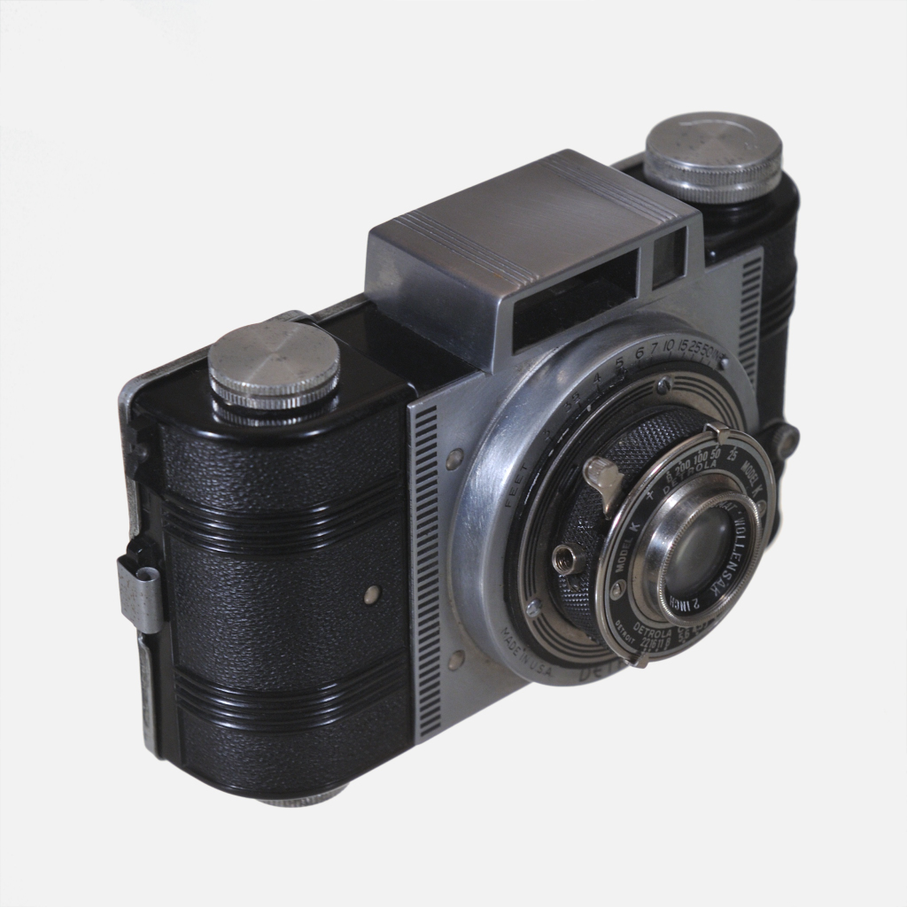 CamerasThe Detrola Model K is a 1940 bakelite 127 film camera known for its faster color-corrected Wollensak lens and higher price point among Detrola’s models.