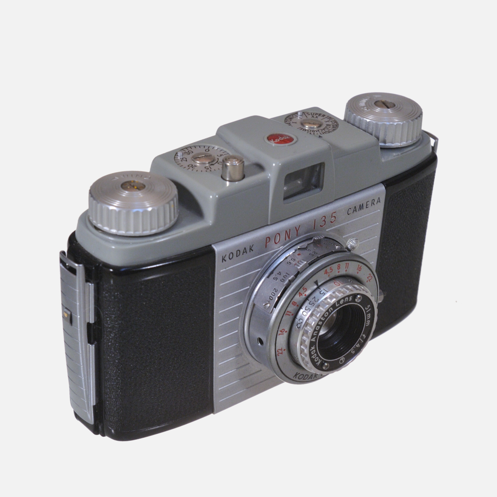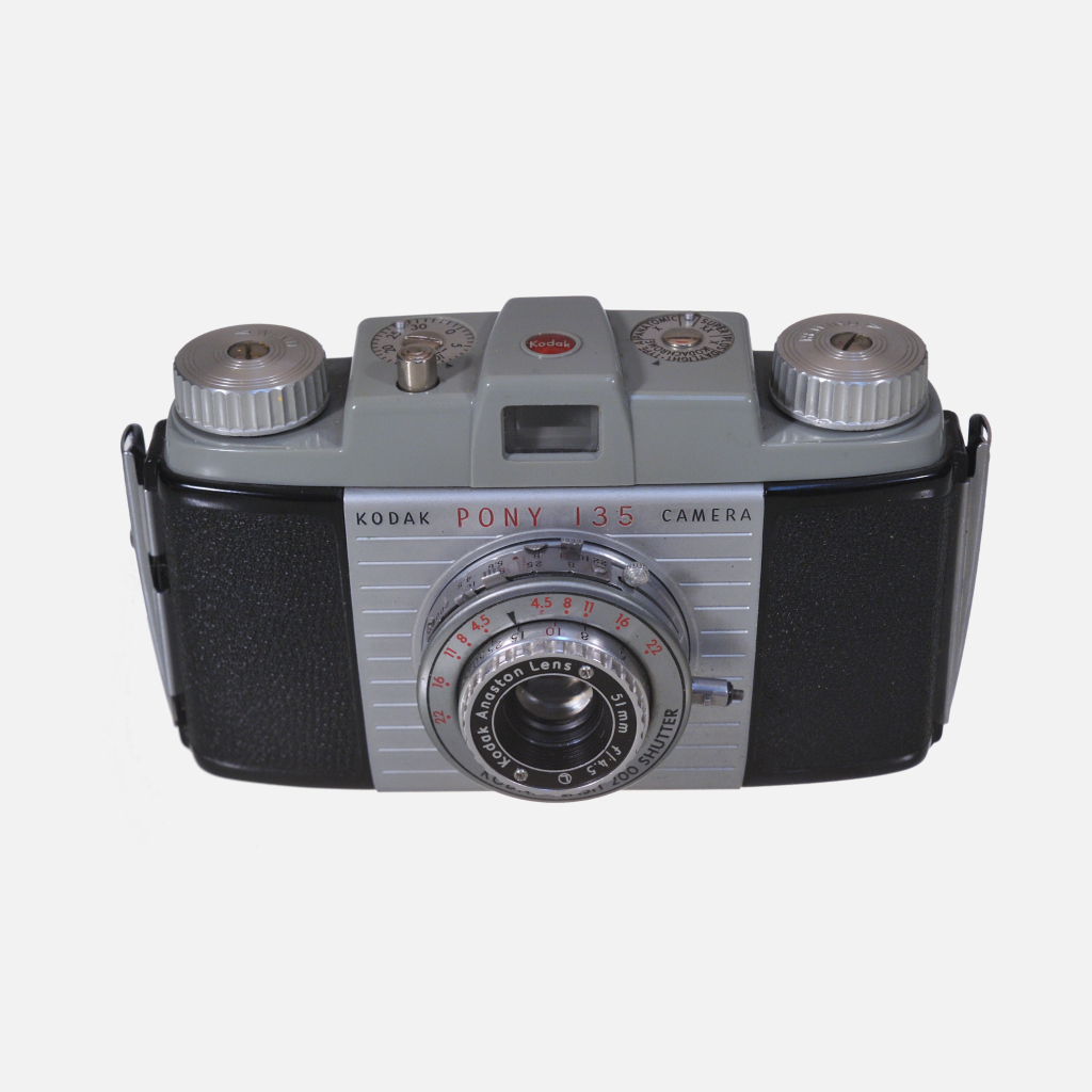 CamerasThe Kodak Pony 135 USA is a compact, durable manual 35mm film camera with a fixed-focus lens designed for simple snapshot photography in the early 1950s.