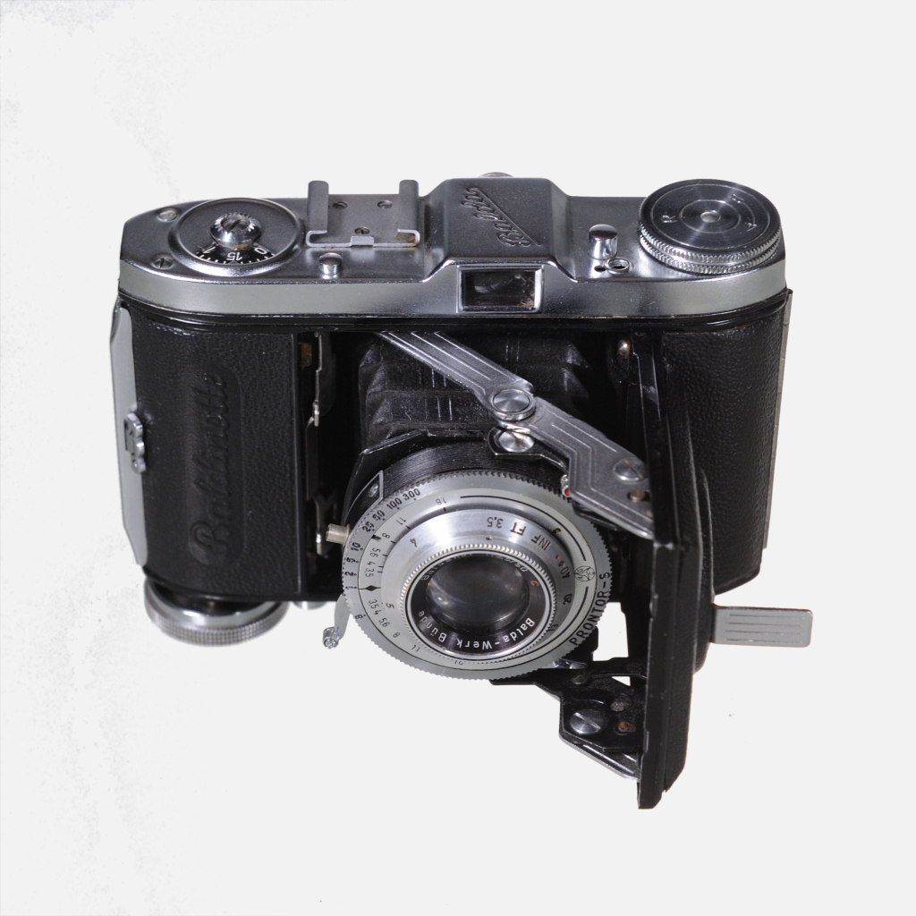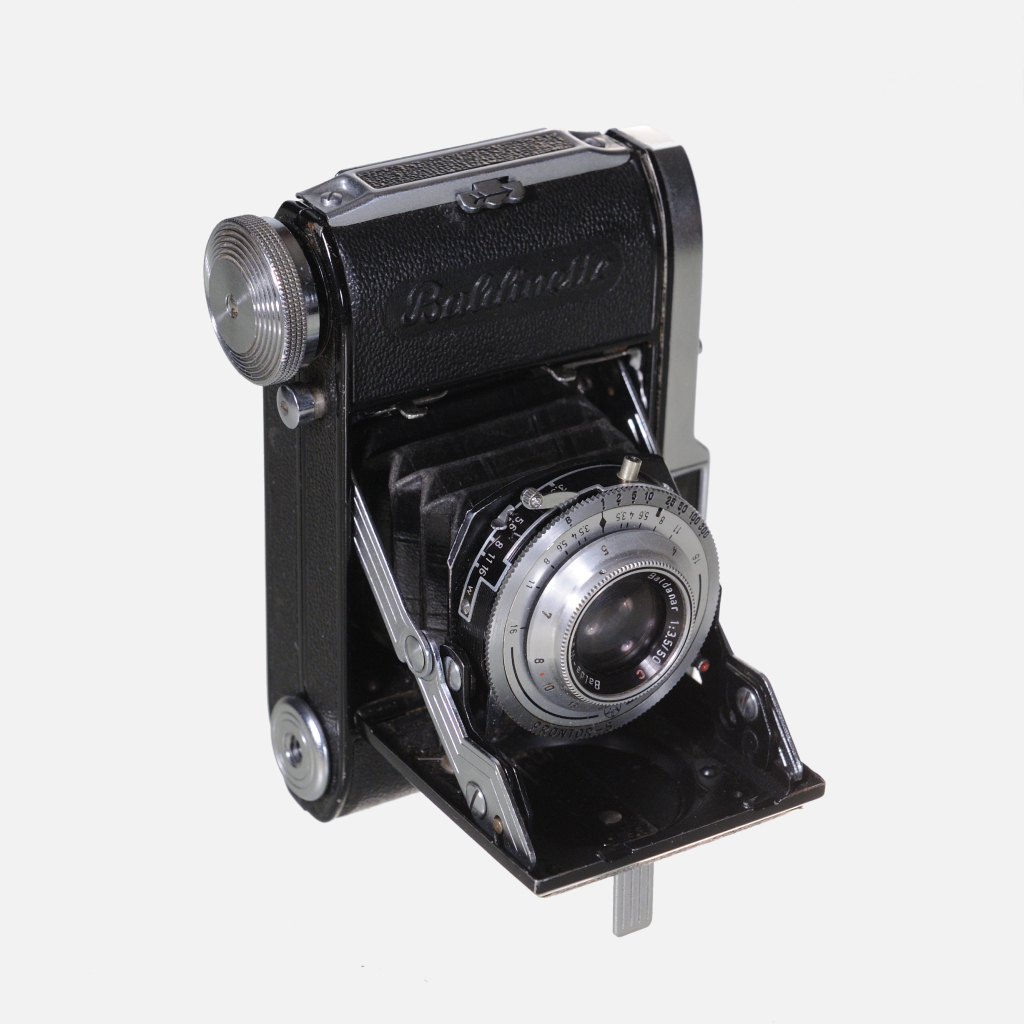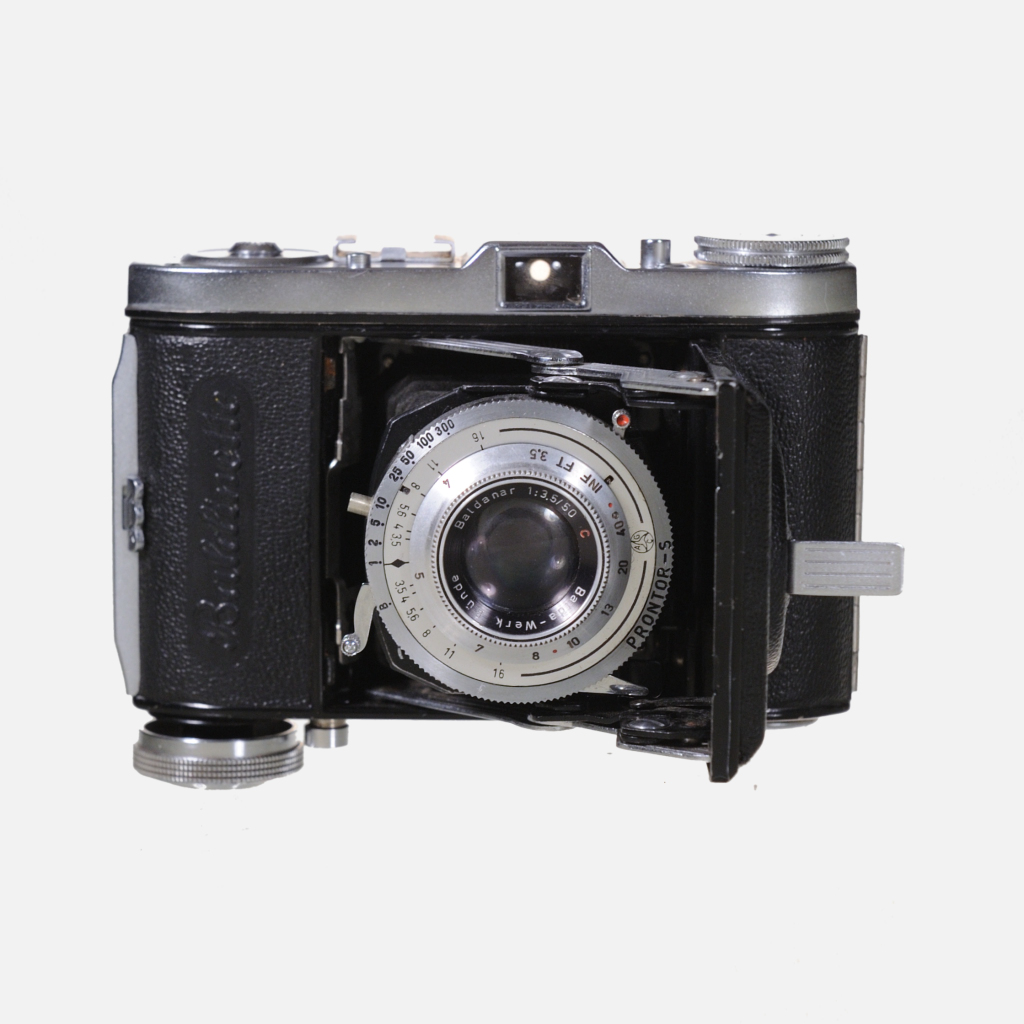 CamerasThe Balda Baldinette (1950) is a compact, all-metal German 35mm folding camera with a Schneider lens and Prontor shutter, known for its pocketable design and manual film winding safety features suitable for daylight shooting.