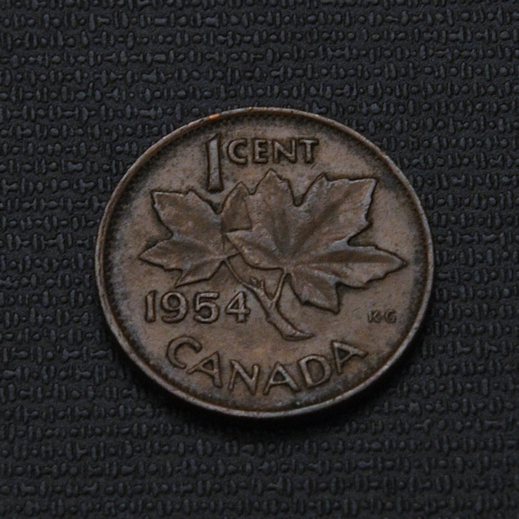The 1954 Canadian 1 cent coin is a small copper coin featuring Queen Elizabeth II’s portrait on the front and two maple leaves on a twig on the back, and is valued for both circulation and collectible purposes due to its design and minting varieties.