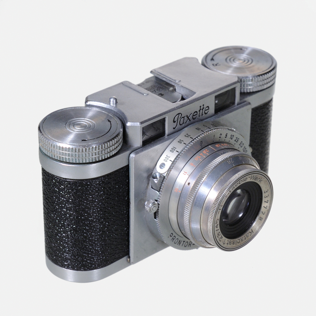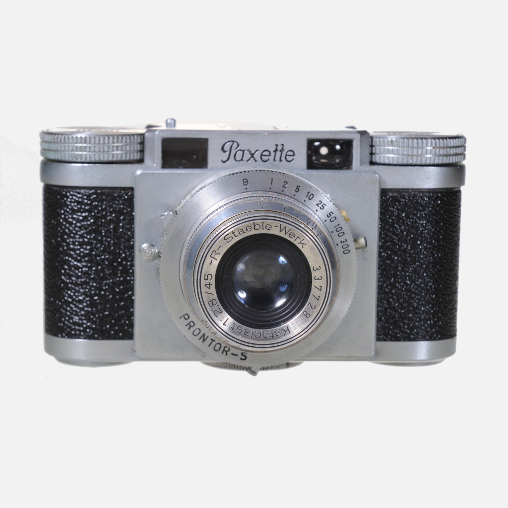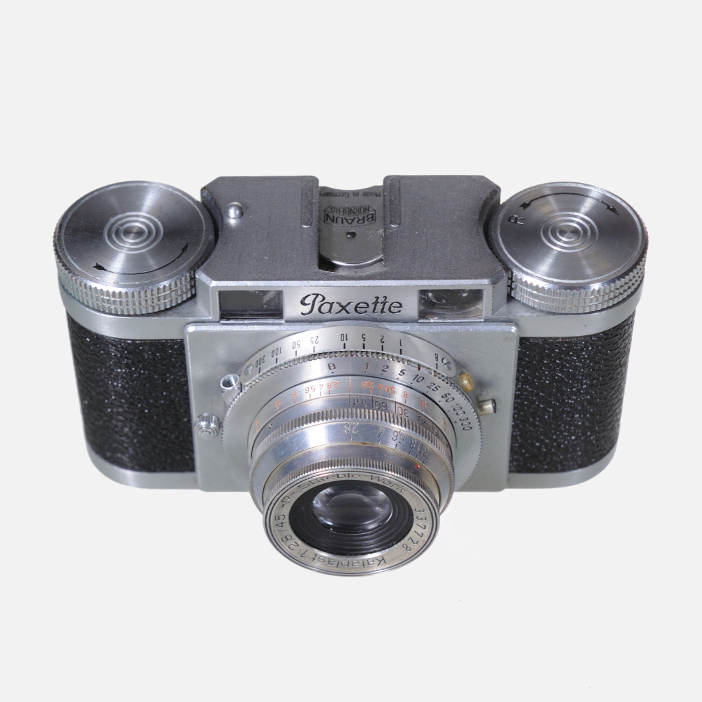 CamerasThe Braun Paxette 1 is a compact, well-built 1950s German 35mm manual viewfinder camera with a fixed 2.8/45 lens and scale focus system, known for its quality finish and straightforward operation.