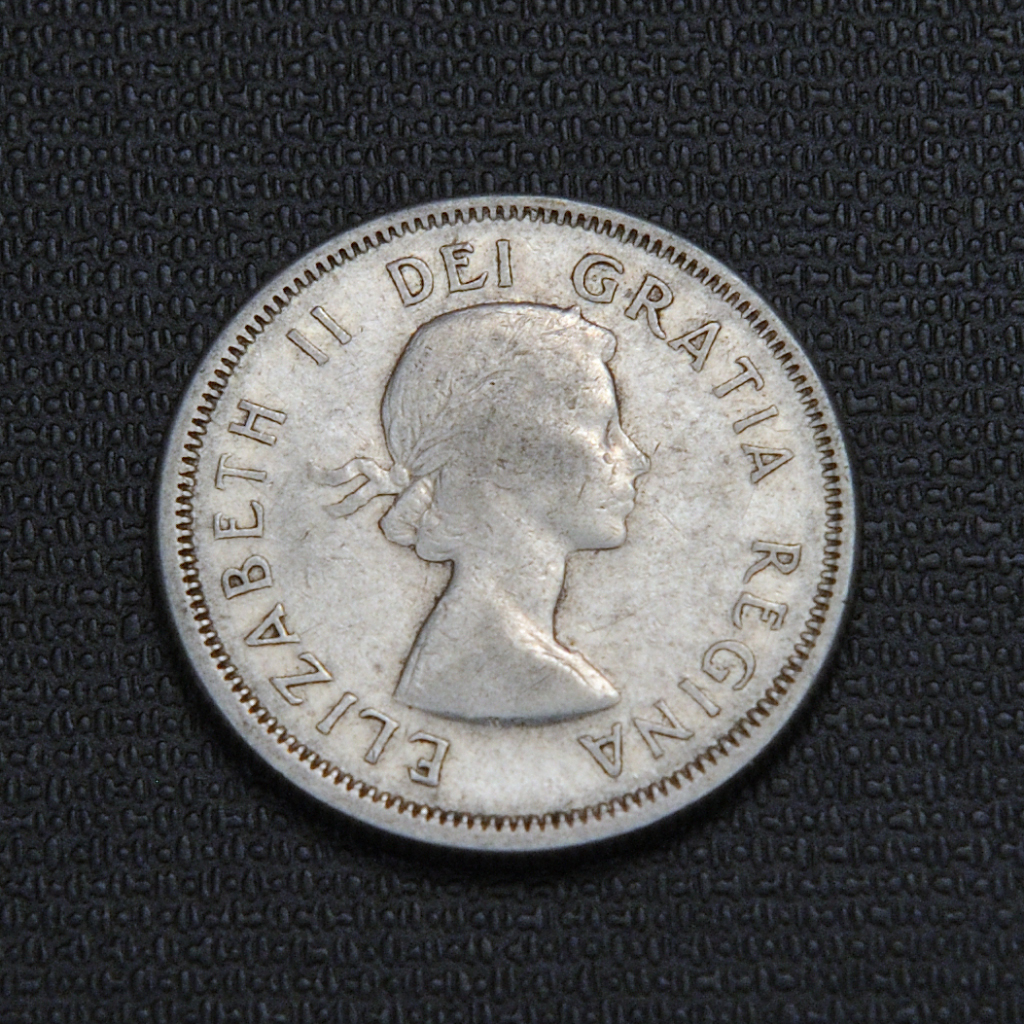 The 1963 Canadian 25-cent quarter is a silver coin composed of 80% silver and 20% copper, weighing approximately 5.83 grams with a diameter of 23.88 mm. Its obverse features a youthful bust of Queen Elizabeth II wearing a laurel wreath, designed by Mary Gillick, accompanied by the inscription “ELIZABETH II DEI GRATIA REGINA.” The reverse side showcases a caribou head, designed by Emanuel Hahn, with the words “CANADA 25 CENTS 1963.” This coin was minted in a circulation of over 21 million pieces by the Royal Canadian Mint and has a reeded edge and medal alignment. Though a circulation coin, its significant silver content gives it a melt value well above its face value, making it valuable to collectors and silver investors alike.