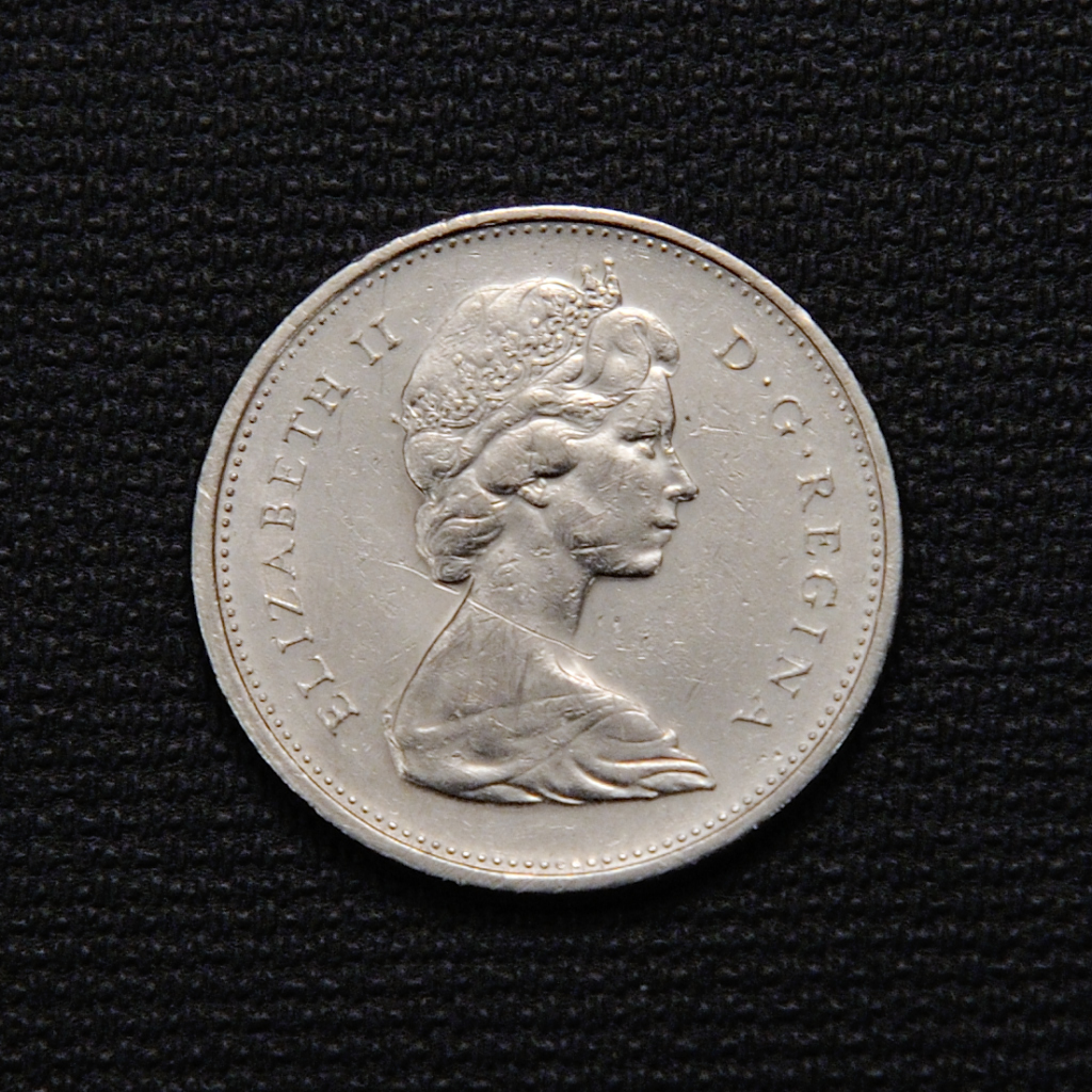 The 1977 Canadian 25-cent quarter, commonly known as the “quarter,” is a small circular coin composed of 99.9% nickel, weighing 5.05 grams, with a diameter of 23.88 mm. The obverse features a portrait of Queen Elizabeth II, while the reverse showcases the iconic caribou head design created by Emanuel Hahn, with the denomination “25 cents” positioned between the caribou’s antlers. This coin was part of the regular circulation struck in that year and is notable as a typical business strike coin, without special commemorative markings or rare errors widely recognized, making it generally valued at its face value in circulated condition.
