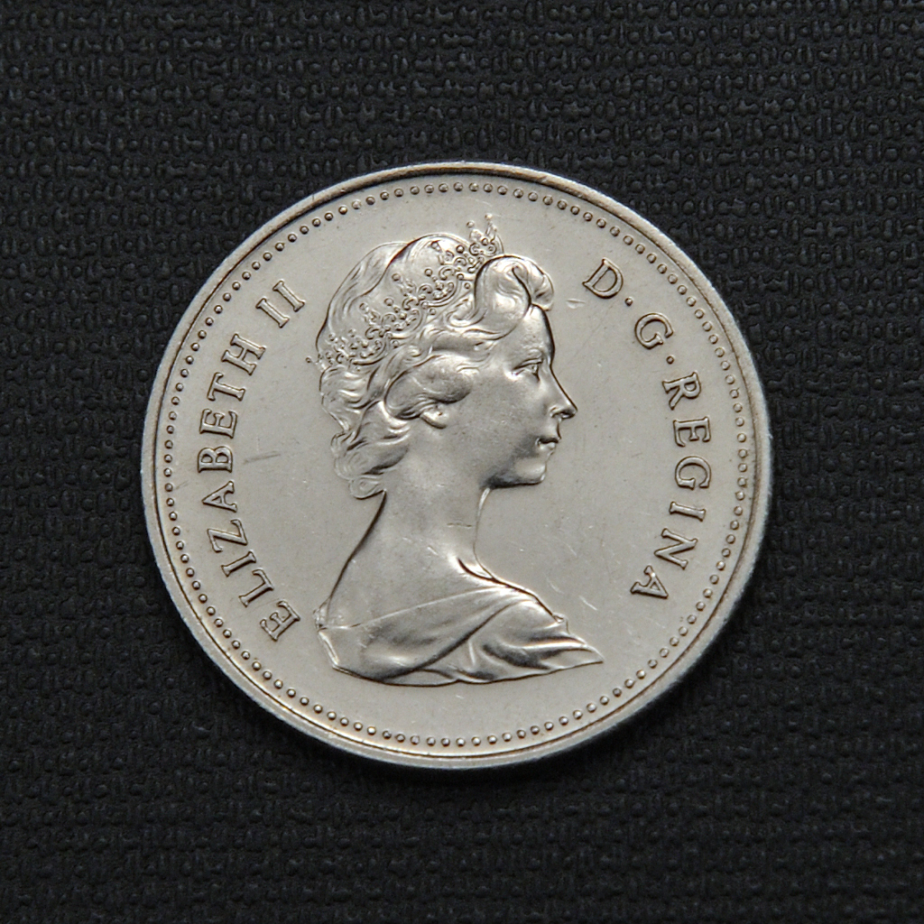 The 1978 Canadian 50-cent coin, minted by the Royal Canadian Mint, is composed of nickel, weighing 8.1 grams with a diameter of 27.13 mm and a reeded edge. The obverse features a bust of Queen Elizabeth II wearing a tiara, designed by Arnold Machin, while the reverse displays a stylized Canadian coat of arms designed by Thomas Shingles, symbolizing England, Scotland, Ireland, and France, the founding nations of Canada. The coin inscribes “ELIZABETH II D – G – REGINA” on the obverse and on the reverse includes the year “1978,” the country name, and the denomination “50 CENTS.” This coin is magnetic and was issued in two varieties known as the “Square Jewels” and “Round Jewels” based on the style of the crown’s jewels. It was struck primarily for circulation with a mintage of over 3.3 million for the Square Jewels variant. The design incorporates the motto “A Mari usque ad Mare,” meaning “from sea to sea,” reflecting a national theme. Although not commonly used in daily transactions today, it is popular among collectors and was produced in circulation, uncirculated, and specimen finishes.