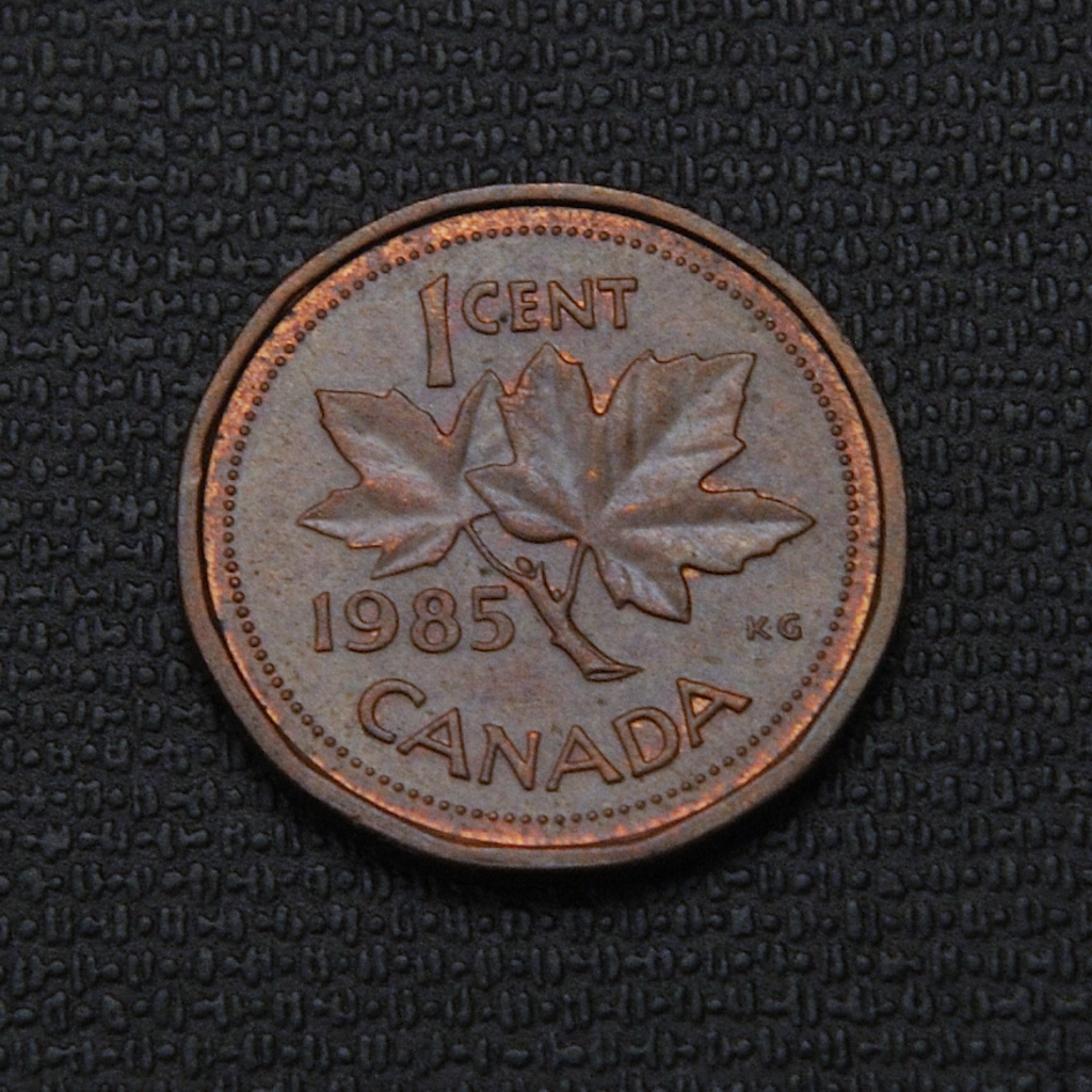 The 1985 Canadian 1 cent “Blunt 5” is a common coin variety distinguished by a flat-topped 5 in the date, made predominantly of copper, and valued modestly compared to its rarer “Pointed 5” counterpart.