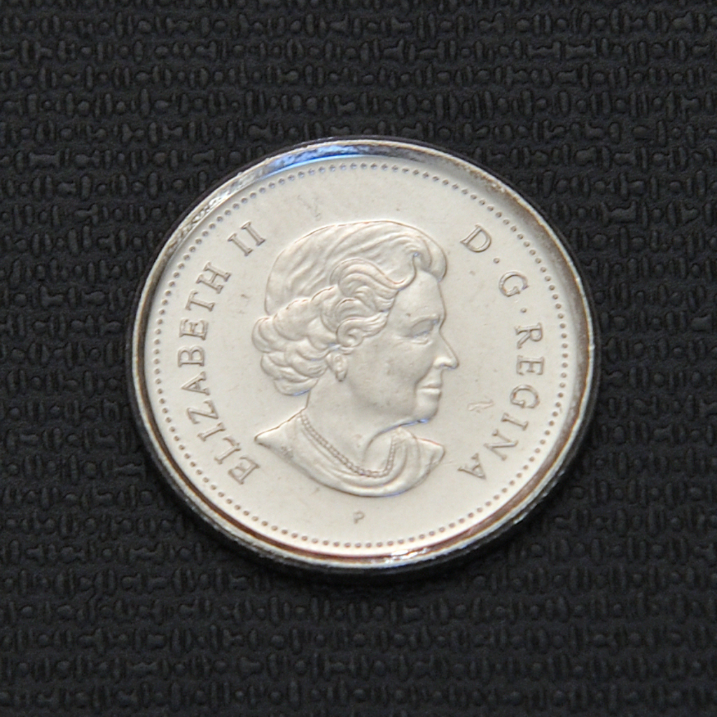 The 2004 Canadian 10 cents coin, also known as the dime, features on its obverse an uncrowned bust of Queen Elizabeth II designed by Susanna Blunt, used since 2003. The reverse side displays the iconic stylized Bluenose schooner with tall sails, a design by Emanuel Hahn that symbolizes Canada’s rich maritime heritage and has been in use since 1937. The coin is made of a copper-plated steel composition consisting of 92% steel, 5.5% copper, and 2.5% nickel, giving it magnetic properties. It weighs 1.75 grams, has a diameter of 18.03 mm, a thickness of 1.22 mm, and features a reeded edge. The 2004 minting was done by the Royal Canadian Mint with a circulation mintage of approximately 214 million coins. The inscriptions include “ELIZABETH II D- G- REGINA” on the obverse and “CANADA 2004 10 CENTS” on the reverse. This coin remains a durable and collectible piece reflecting a blend of traditional symbolism and modern minting technology.