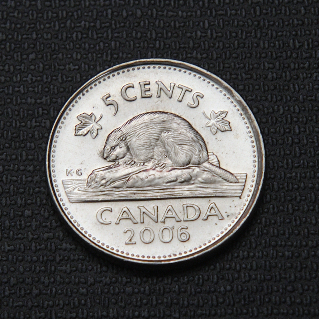 In short, the 2006 P Canadian 5 cent coin is a copper-plated steel beaver nickel with Queen Elizabeth II’s uncrowned bust on the obverse.