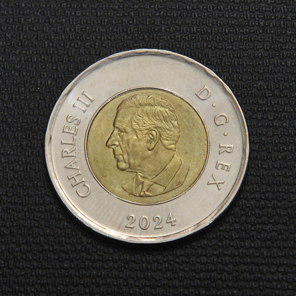 In 2024, Canada issued two notable $2 coins featuring the iconic polar bear design originally created by artist Brent Townsend and introduced in 1996. The standard circulation $2 coin, known as the “Toonie,” retains its classic bi-metallic composition with a multi-ply nickel-plated steel outer ring and a multi-ply brass-plated aluminum bronze center, weighing 6.92 grams with a diameter of 28 mm. This coin depicts an adult polar bear in early summer on an ice floe, symbolizing strength and Canada’s Arctic heritage, and it bears the portrait of King Charles III on the obverse. Additionally, a special collector’s $20 coin released in 2024 features a striking silver and gold design where the polar bear on the reverse appears to step into three-dimensional space, with the outer ring plated in yellow gold and the center remaining silver, making it a visually stunning reverse toonie version primarily made from 99.99% pure silver with selective gold plating. Both coins celebrate the polar bear as a powerful national symbol and showcase Canada’s minting artistry and wildlife heritage